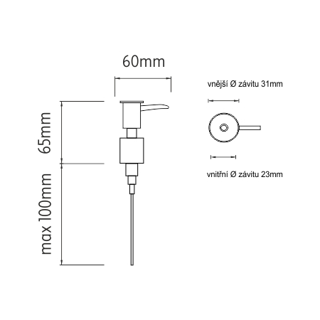 Dávkovací pumpička, materiál plast, povrchová úprava chrom.