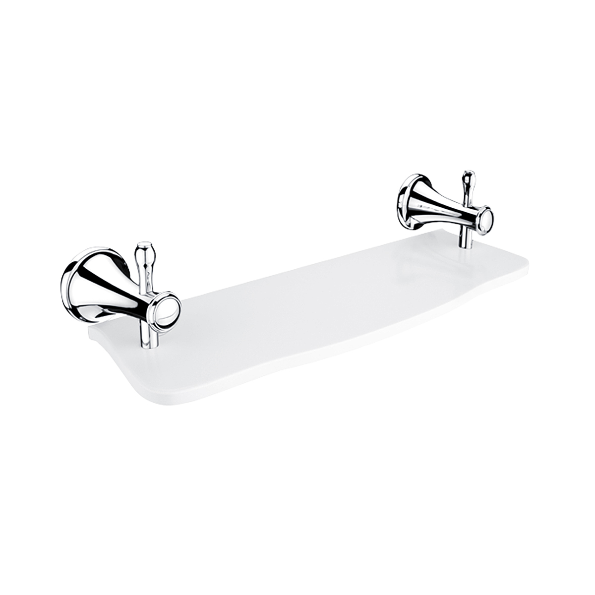Police z bílého umělého kamene. Délka 40 cm. Úchyty mosaz s povrchovou úpravou chrom.