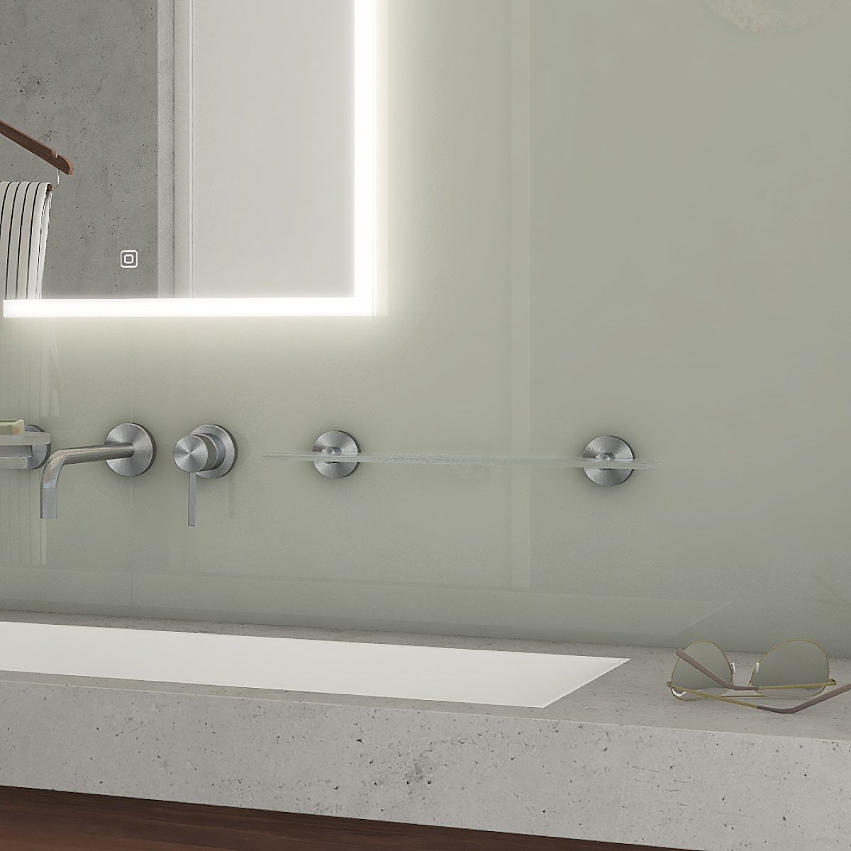 Police. Sklo extra čiré matné. Rozměr 60x11 cm. Tloušťka skla 8 mm! Úchyty broušená nerez.