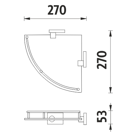 Police rohová s ohrádkou. Matné sklo. Rozměr 27x27 cm.