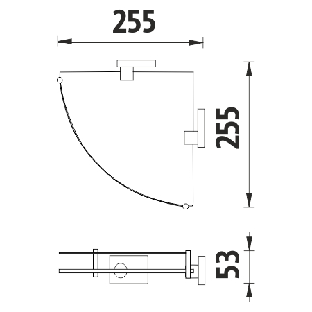 Police rohová s ohrádkou. Sklo extra čiré matné. Tloušťka skla 8 mm!