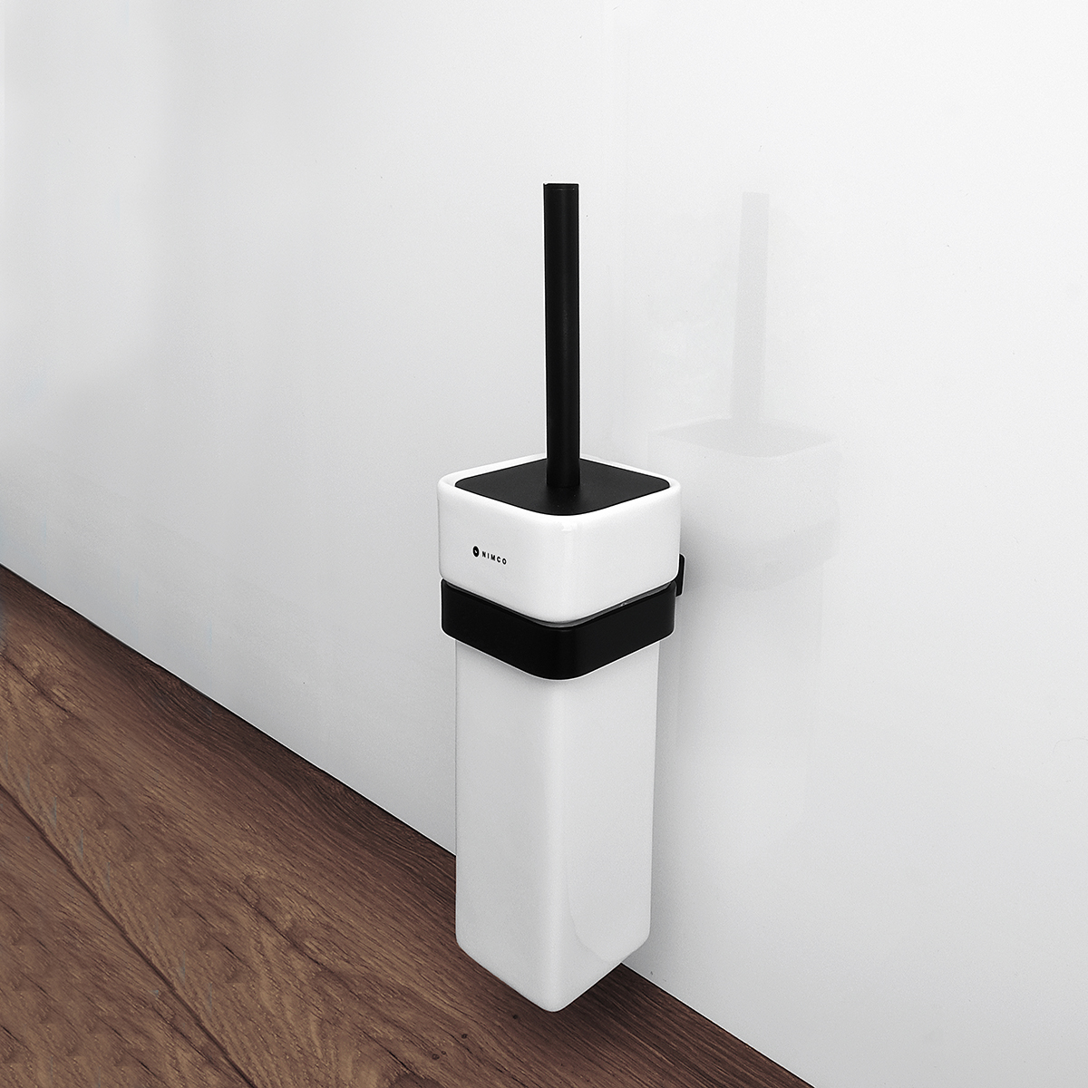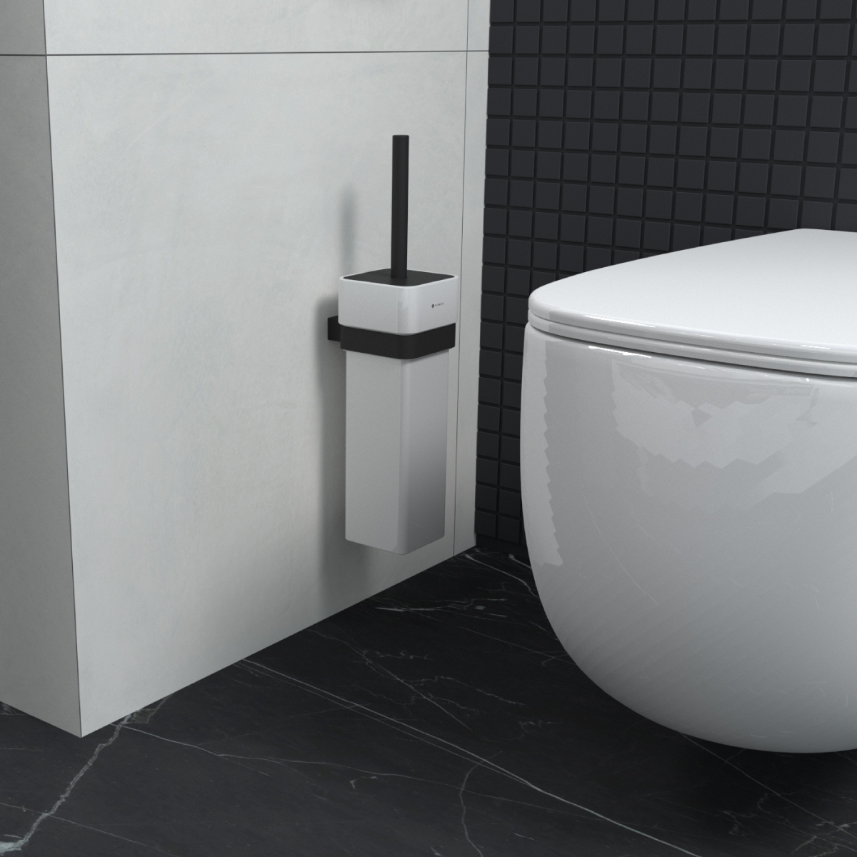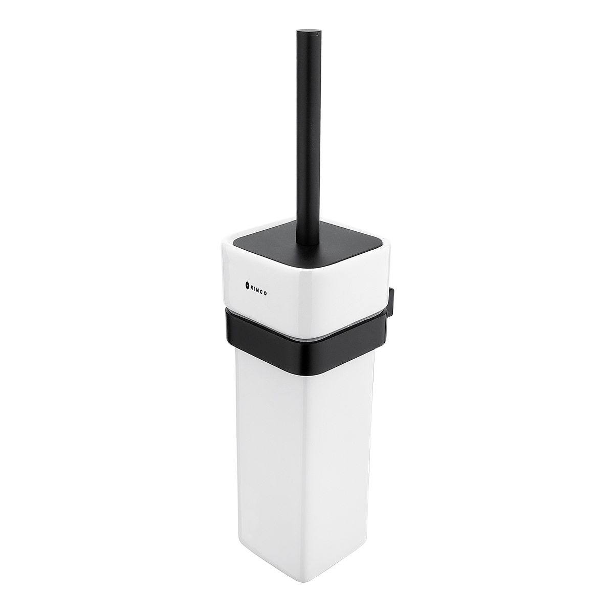WC štětka s keramickou nádobkou. Úchyt a rukojeť z mosazi, povrchová úprava černý mat.