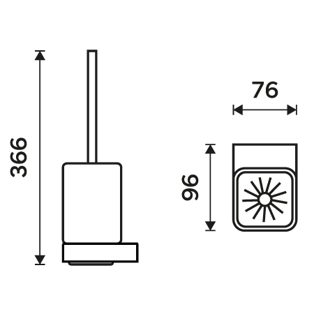 WC štětka. Nádobka z matného skla. Rukojeť kartáče chrom.