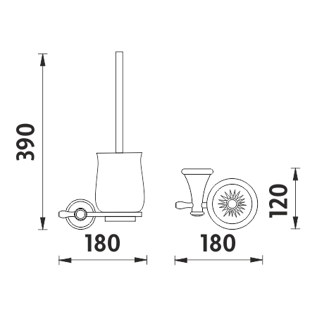 WC štětka. Keramická nádobka. Materiál mosaz s povrchovou úpravou staroměď.