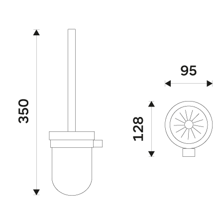 WC štětka. Nádobka nízká keramická. Kartáč černý mat.