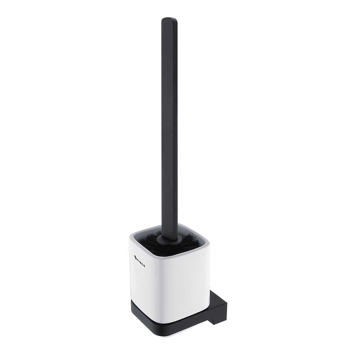 WC štětka s masivní hranatou rukojetí z mosazi. Keramická nádobka. Rukojeť kartáče černý mat.