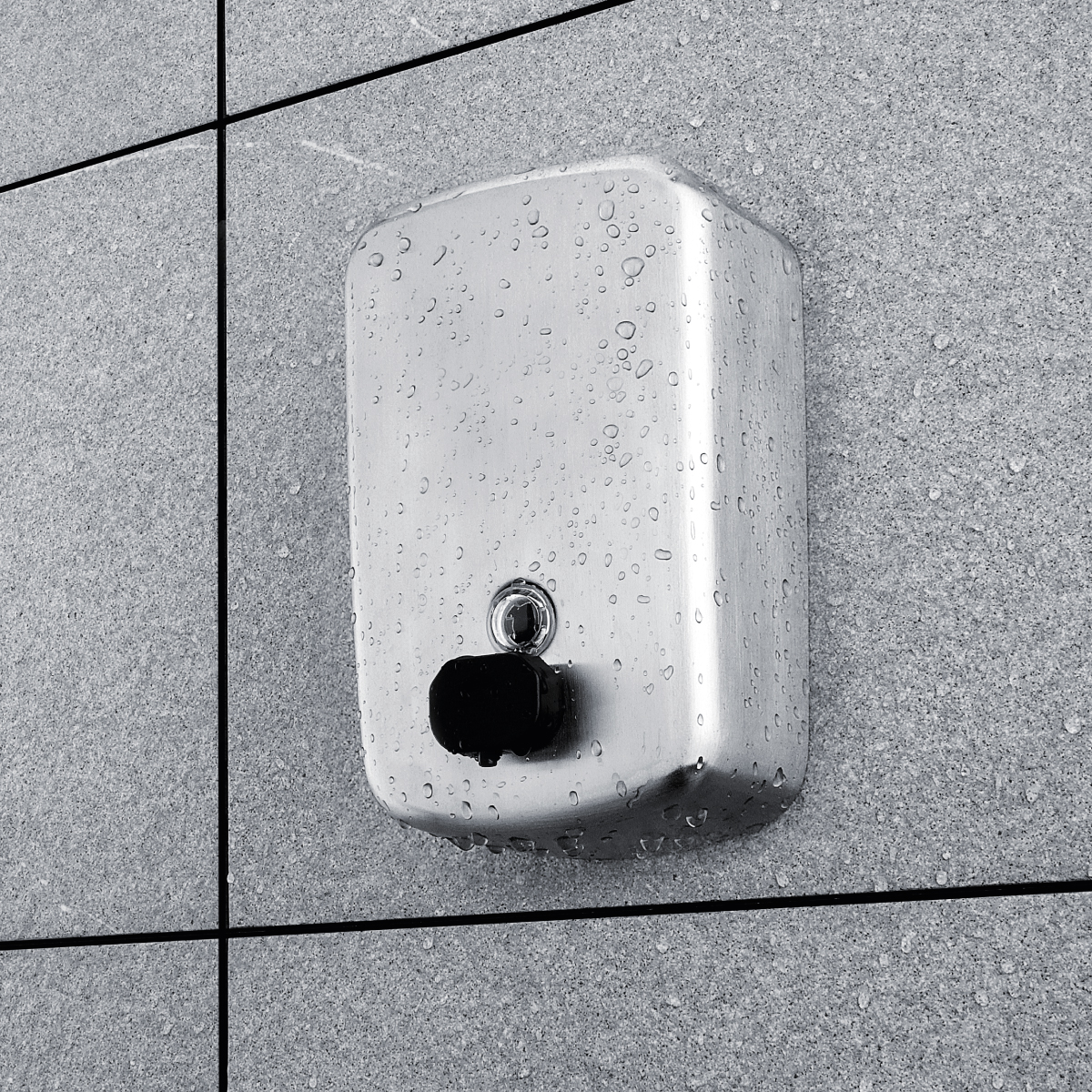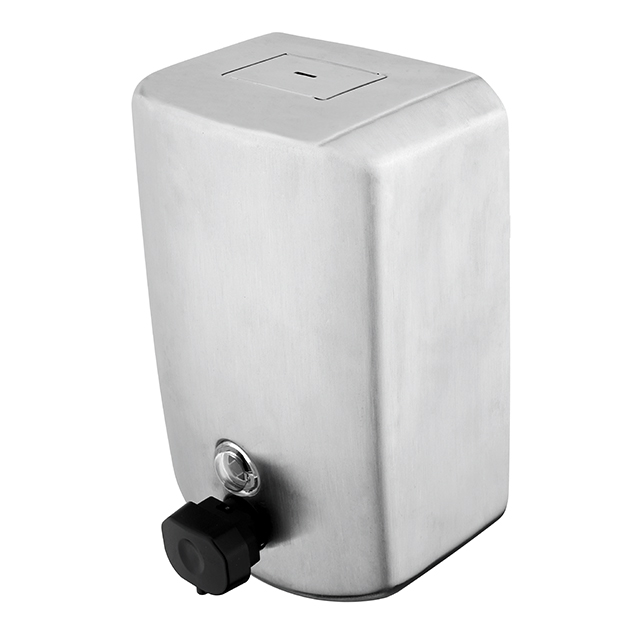 Zásobník na tekuté mýdlo vertikální. Broušená nerez 18/8. Objem 1500 ml. Pumpička plastová černá.