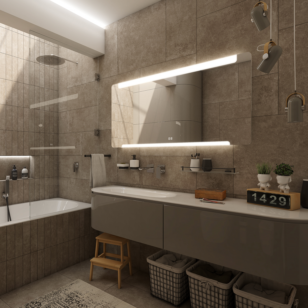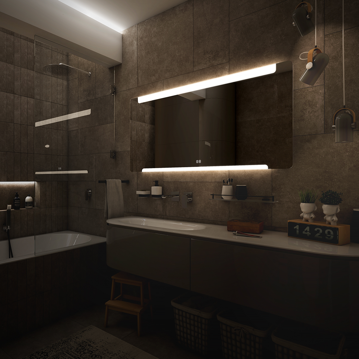 Illuminated bathroom LED mirror. Output 34,5 W. Possibility of setting color temperature 3000 - 6500 K. The possibility of setting the luminosity intensity. 2484 Lumens.