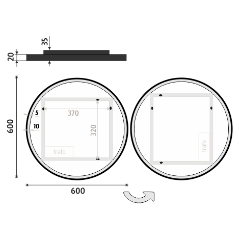 - Materiál konstrukce: Rám zrcadla a kryt zdroje jsou vyrobeny z hliníku