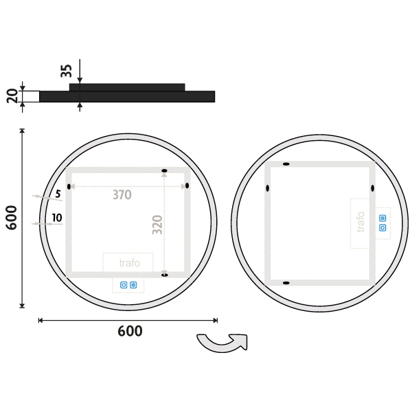 Černé kulaté LED zrcadlo pr. 600 se dvěma dotykovými senzory