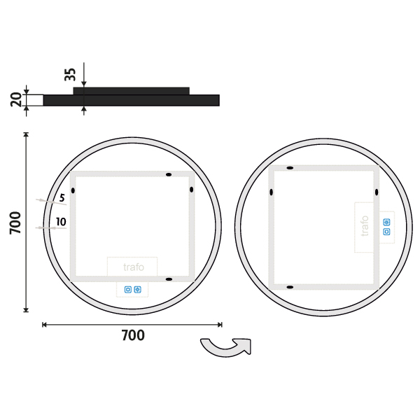 Černé kulaté LED zrcadlo pr. 700 mm se dvěma dotykovými senzory