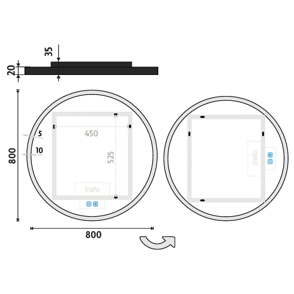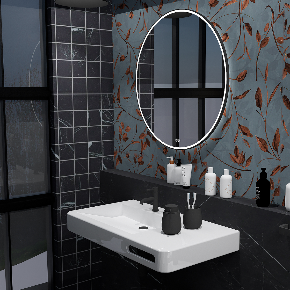 Černé kulaté LED zrcadlo pr. 800 se dvěma dotykovými senzory