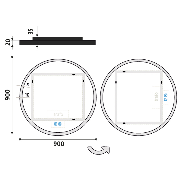 Koupelnové podsvícené KULATÉ LED zrcadlo. Příkon 43 W. Možnost nastavení barevné teploty od 3000 - 6500 K. Možnost nastavení intenzity svítivosti. 3096 Lumen.