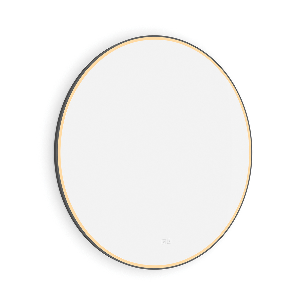 Černé kulaté LED zrcadlo pr. 900 mm se dvěma dotykovými senzory