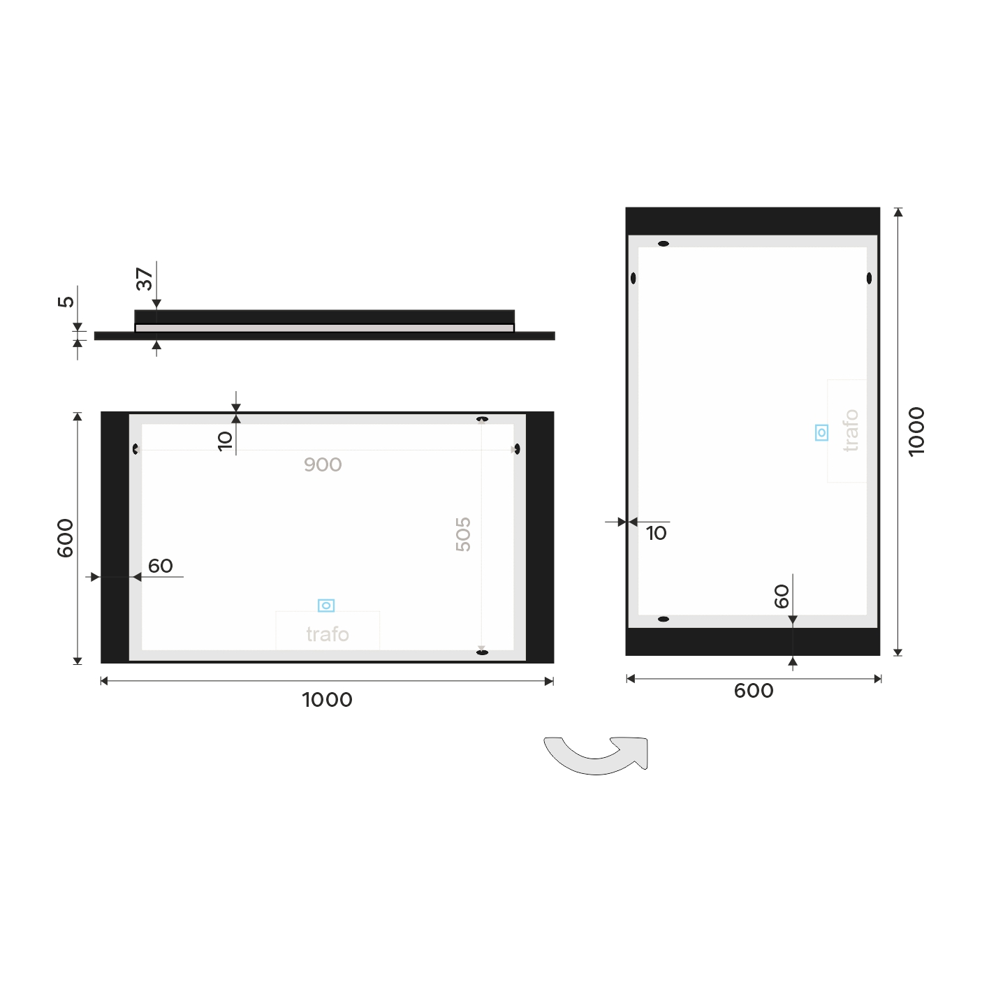 Černé LED zrcadlo 1000x600 s dotykovým senzorem