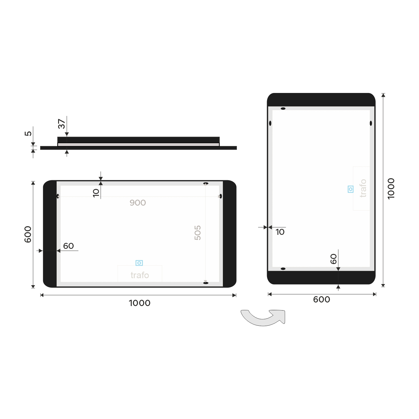 Černé LED zrcadlo 1000x600 s dotykovým senzorem