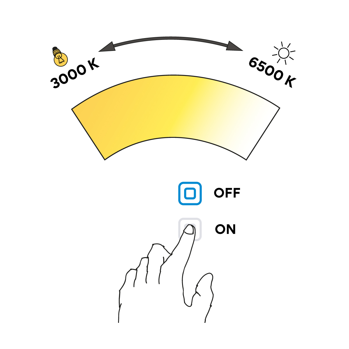 Koupelnové podsvícené LED zrcadlo. Příkon 27 W. Možnost nastavení barevné teploty od 3000 - 6500 K. 1944 Lumen.