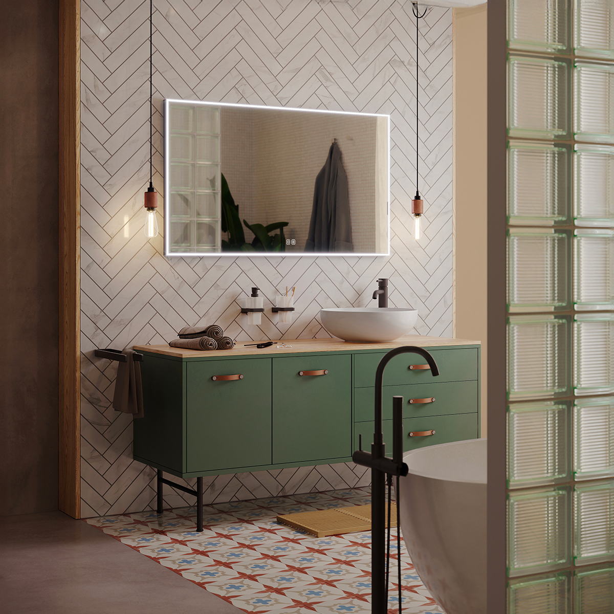 Pro dosažení kvalitního a rovnoměrného svícení je použit akrylový difuzor, který zajišťuje měkký a harmonický rozptyl světla bez viditelných bodových zdrojů. LED diody jsou vkusně integrovány do rámu spolu s difuzorem, což přispívá k elegantnímu a čistému vzhledu zrcadla.