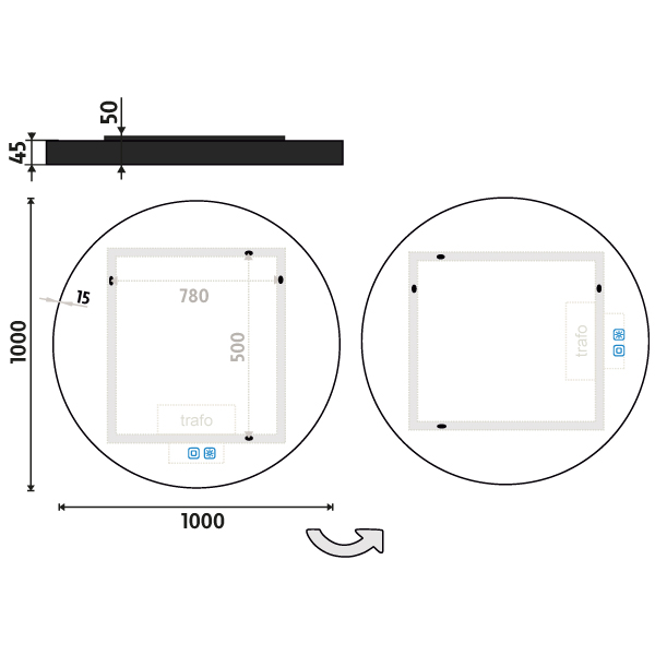 ČERNÉ LED zrcadlo pr. 1000 se dvěma dotykovými senzory