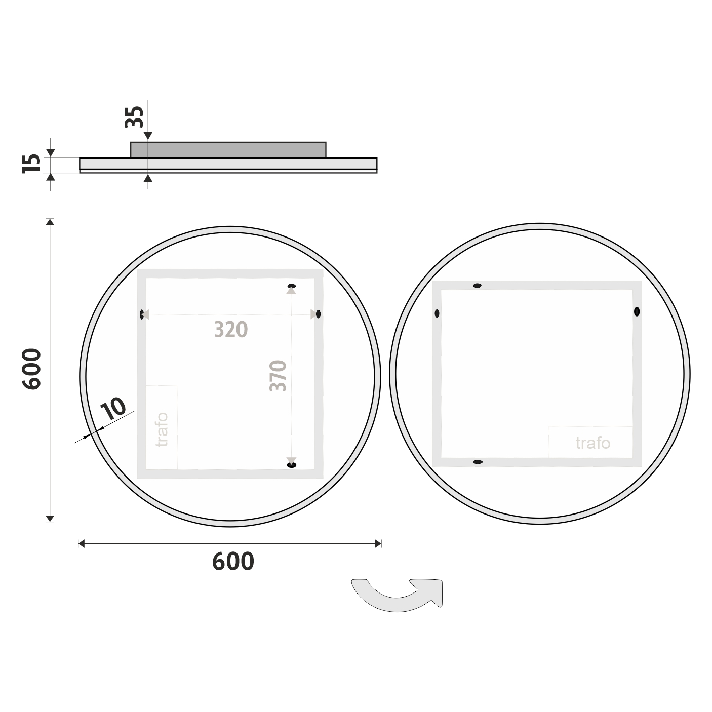 - Konstrukce podsvícení: K rovnoměrnému rozptylu světla zrcadlo disponuje difuzorem z akrylového skla
