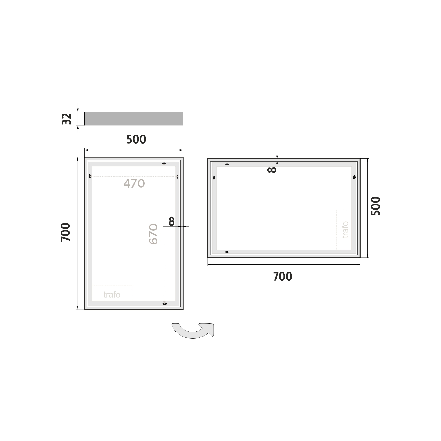 - Materiál konstrukce: Rám zrcadla a kryt zdroje jsou vyrobeny z hliníku