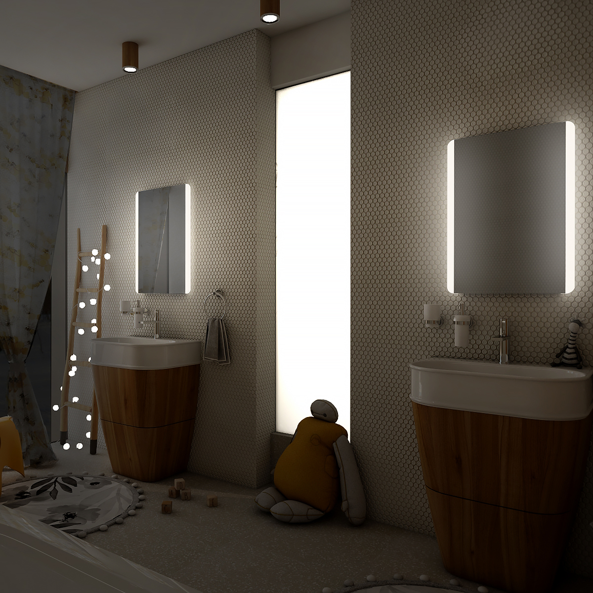 Zrcadlo bez integrovaného vypínače je určené k připojení a ovládání nástěnným vypínačem. Barva podsvícení zrcadla je pevně nastavena.
