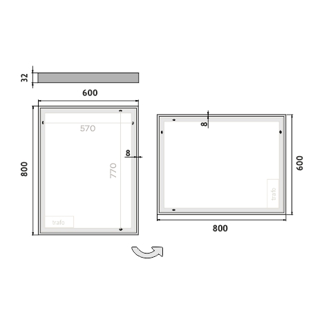 Pro dosažení kvalitního a rovnoměrného svícení je použit akrylový difuzor, který zajišťuje měkký a harmonický rozptyl světla bez viditelných bodových zdrojů. LED diody jsou vkusně integrovány do rámu spolu s difuzorem, což přispívá k elegantnímu a čistému vzhledu zrcadla.