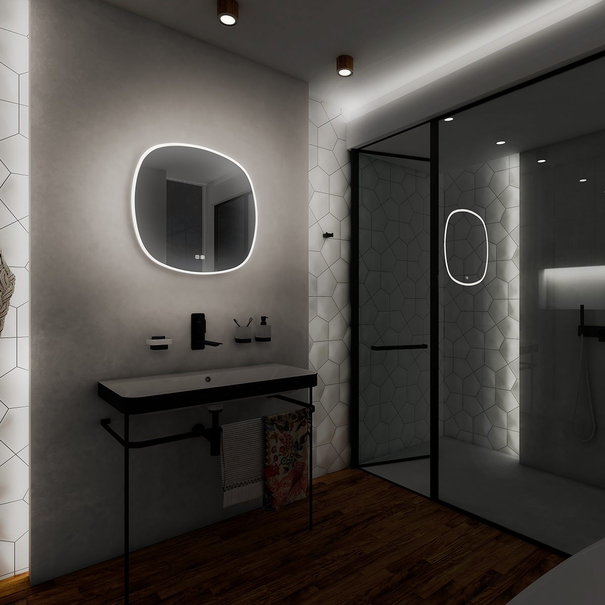 Zrcadlo se ovládá dvěma dotykovými podsvícenými senzory, které umožňují změnu barvy podsvícení, nastavení intenzity osvětlení (stmívání) a disponují paměťovou funkcí pro uložení posledního nastavení. Kromě toho lze zrcadlo ovládat i pomocí nástěnného vypínače, což zvyšuje jeho flexibilitu a pohodlí použití.