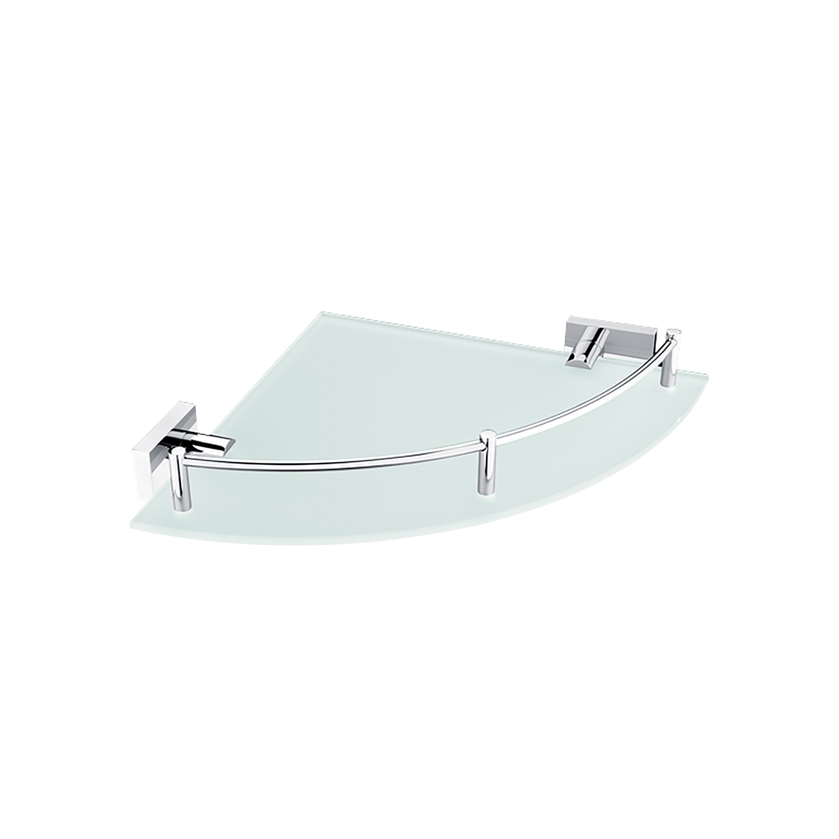 Corner shelf with rail made of satin glass. Size 27x27 cm.