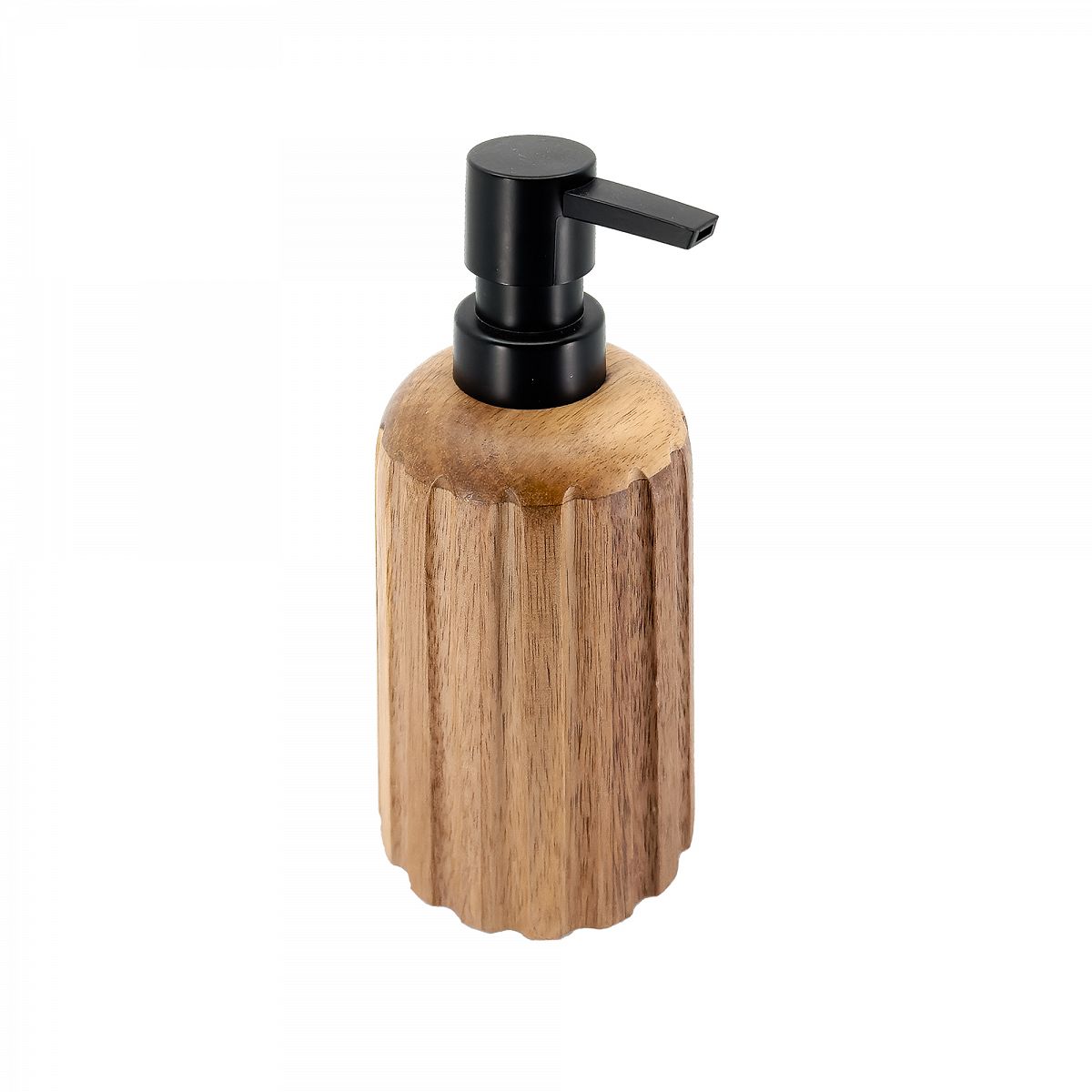 Liquid soap dispenser, black plastic pump. Acacia wood, FSC certified.