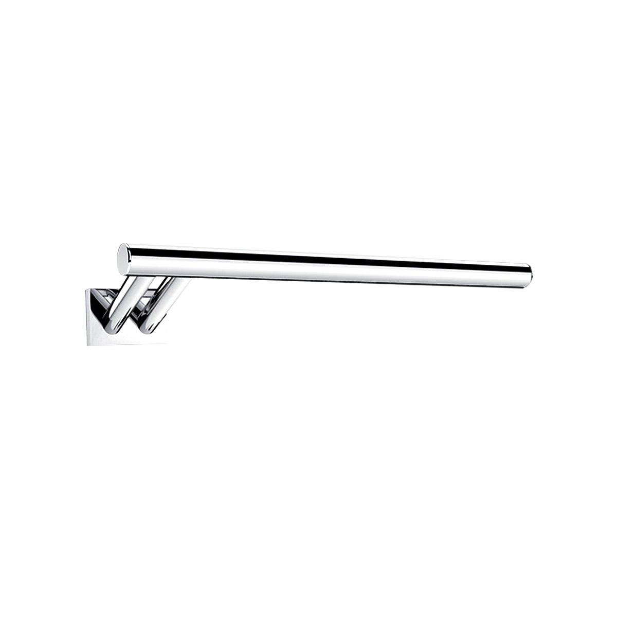 Right towel holder, assembled to wall. Made of brass, chrome surface finish.