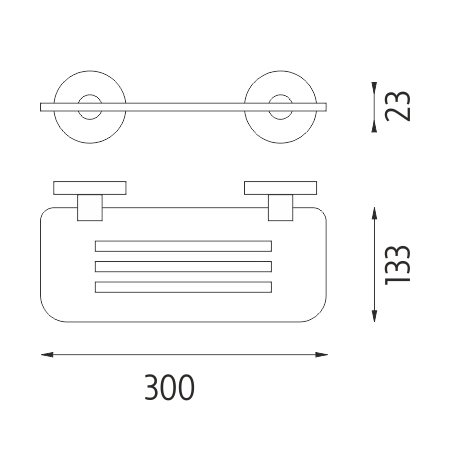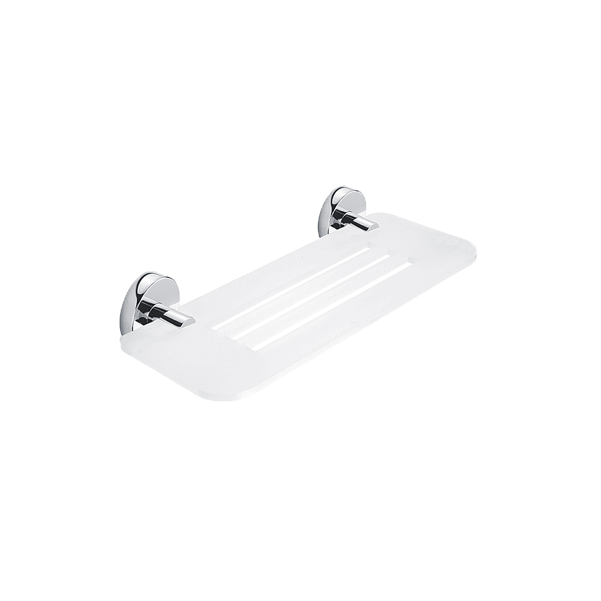 Shelf with milling, made of satin plexiglass. 30 cm long. Brass holders, chrome surface finish.