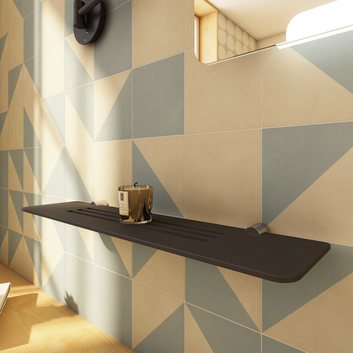 Shelf with milling, made of satin plexiglass. 50 cm long.