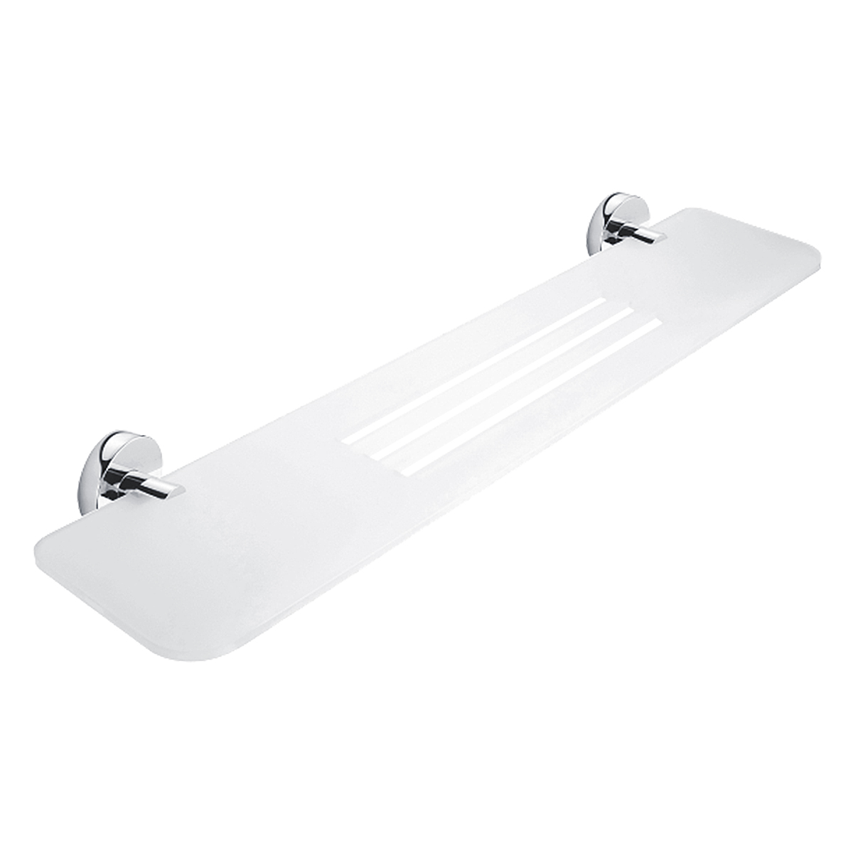 Shelf with milling, made of satin plexiglass. 60 cm long. Brass holders, chrome surface finish.