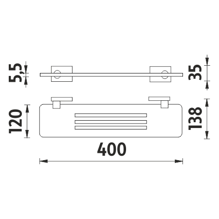 Shelf with milling made of plexiglass. Brass holders / chrome. 40 cm long.
