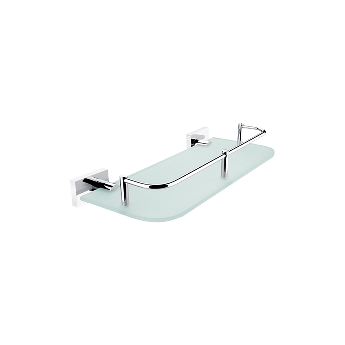 Shelf with rail made of satin glass. 30 cm long. Made of brass, chrome surface finish.