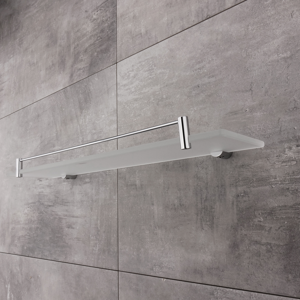 Shelf with rail. Extra clear glass, satin . Size 60x11 cm. 8 mm thick glass!