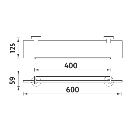 Shelf with rail, 60 cm