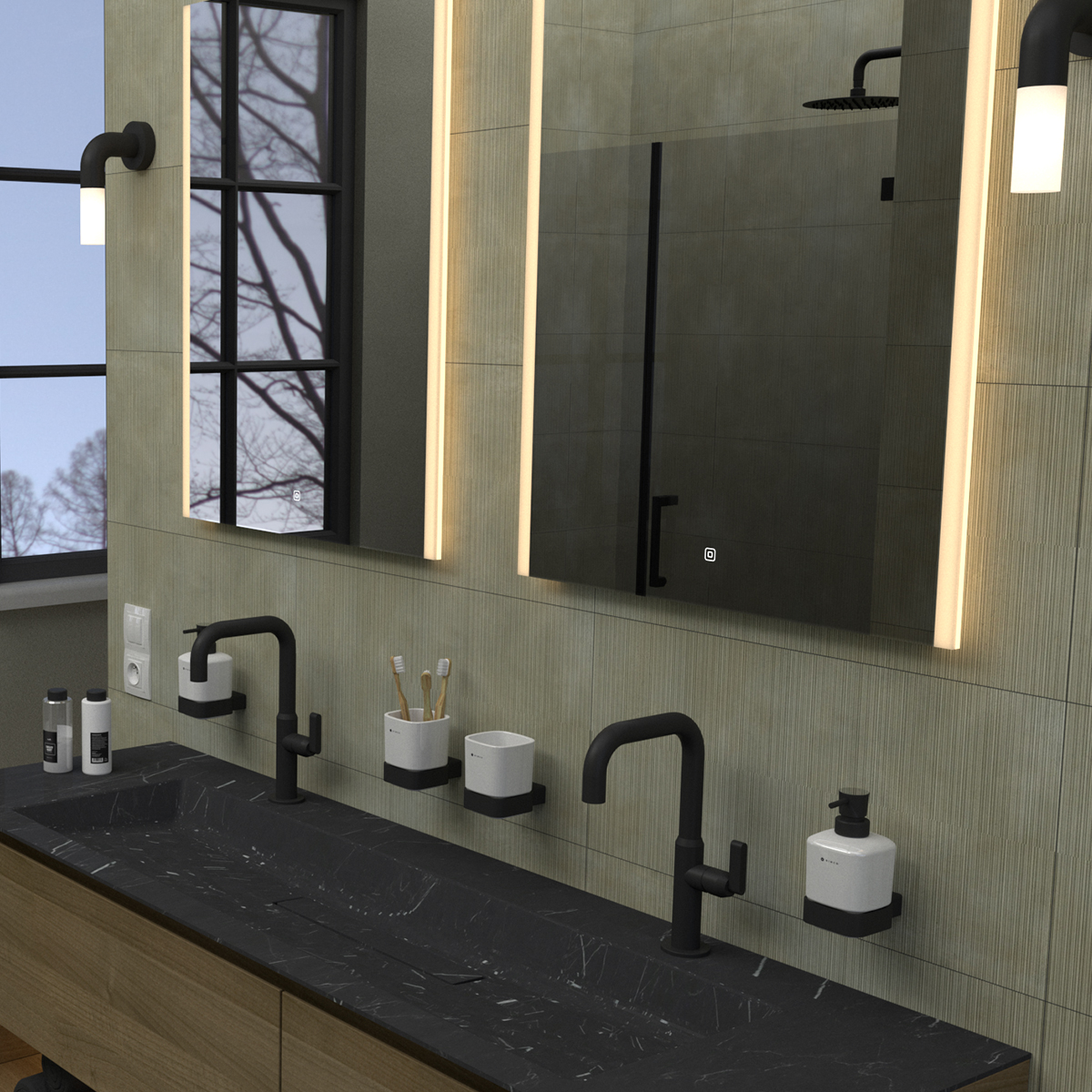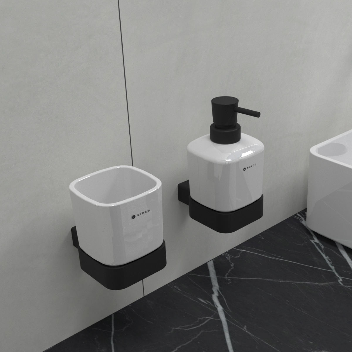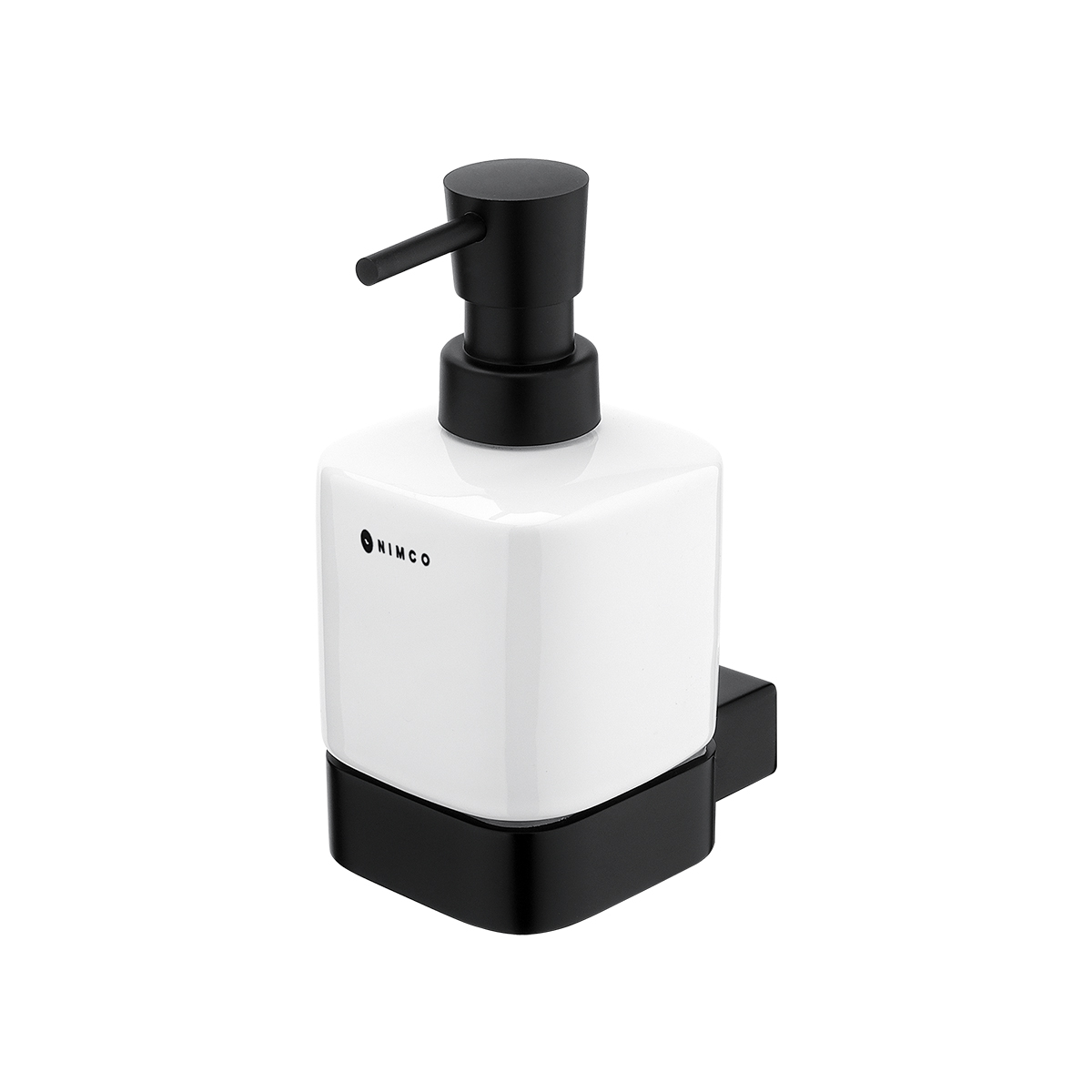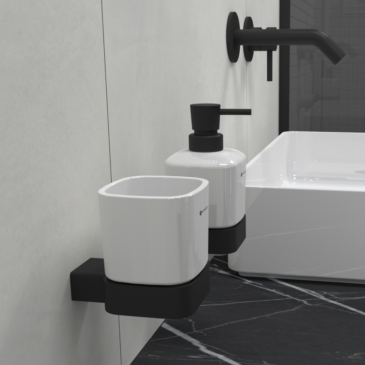 Soap dispenser. Ceramic container. Brass holder / black matte. Volume 320 ml.