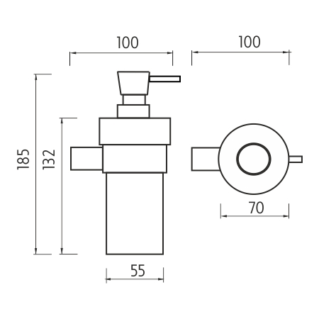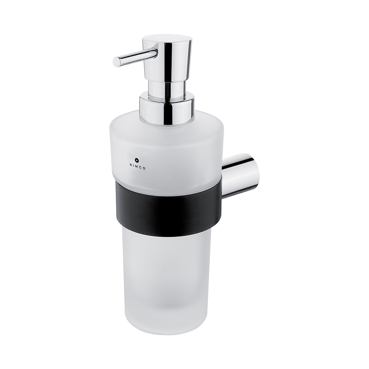 Soap dispenser. Satin glass container, volume 250 ml. Brass pump, chrome surface finish.