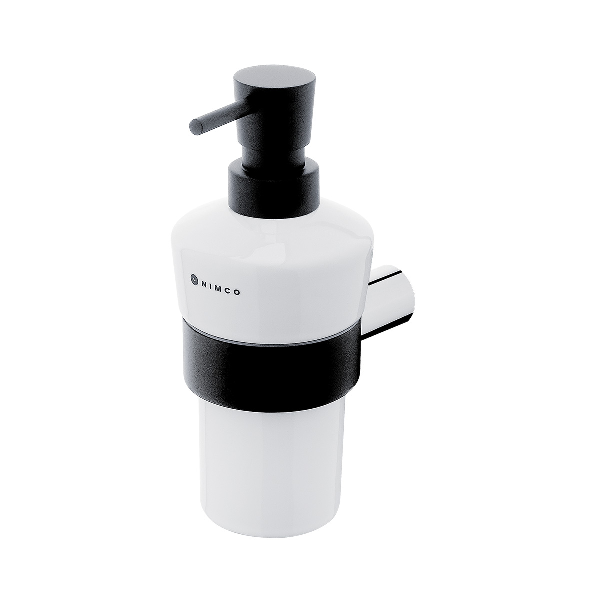 Soap dispenser. Ceramic container, volume 280 ml. Brass pump, black matt surface finish.