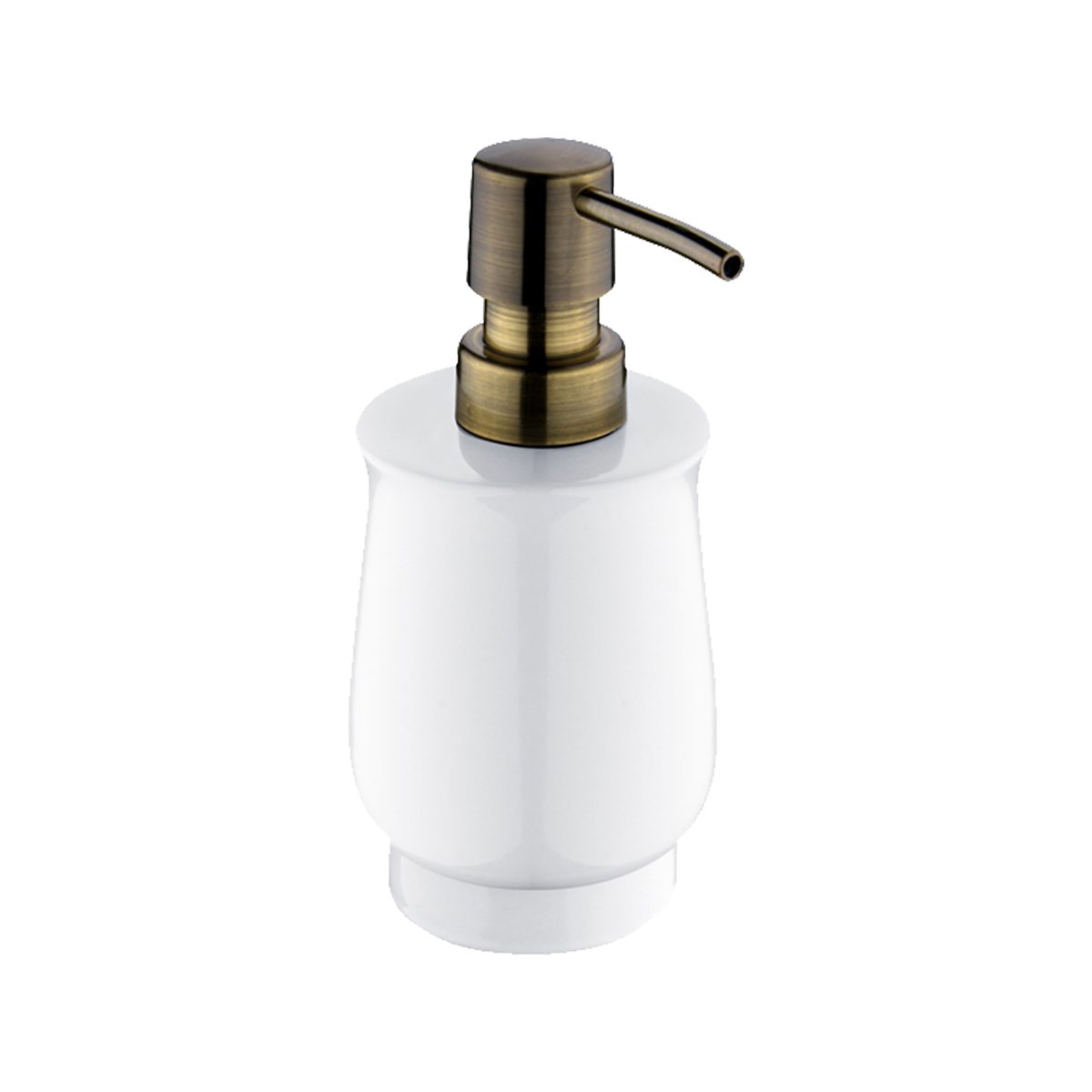 Ceramic soap dispenser. Volume 300 ml. Plastic pump. Antique brass surface finish.