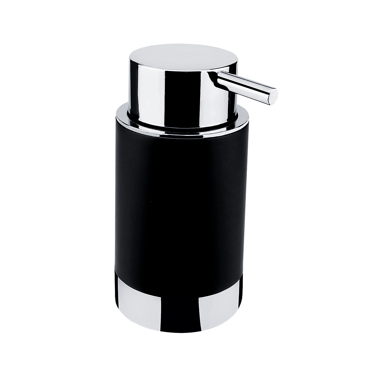 Free-standing soap dispenser with chrome plated pump. Volume 300 ml. Black color.