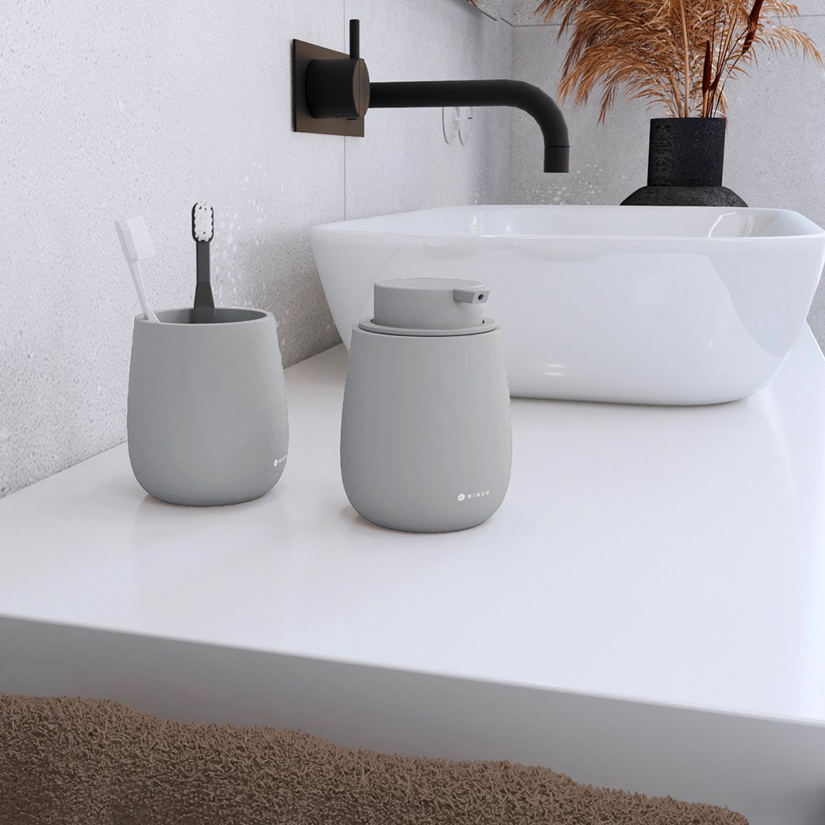 Ceramic liquid soap dispenser light gray matte. Volume 425 ml. Soft-touch Surface.