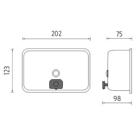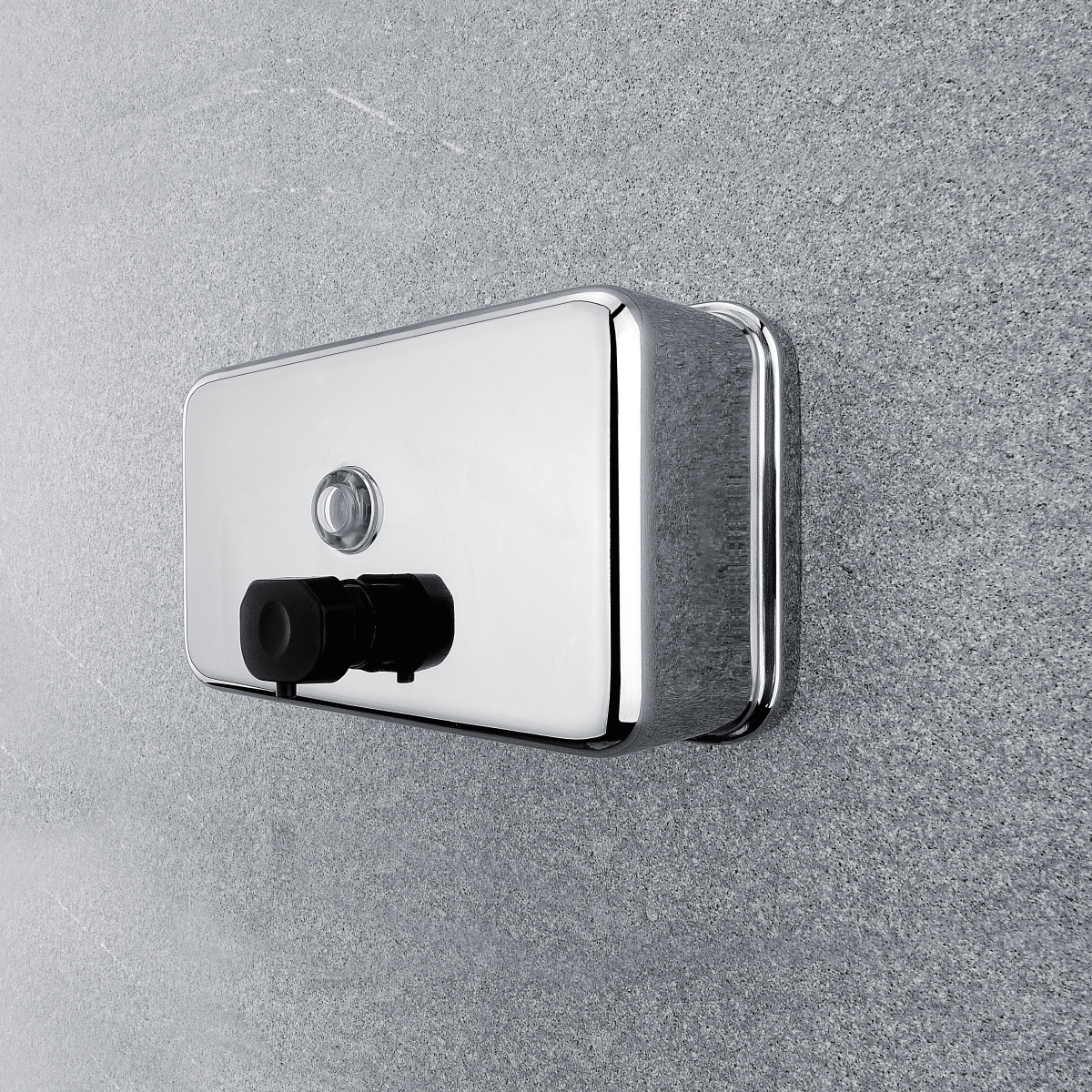 Soap  or disinfectant gel dispenser - horizontal. Polished stainless steel 18/8. Volume 1100 ml. Plastic pump - black.