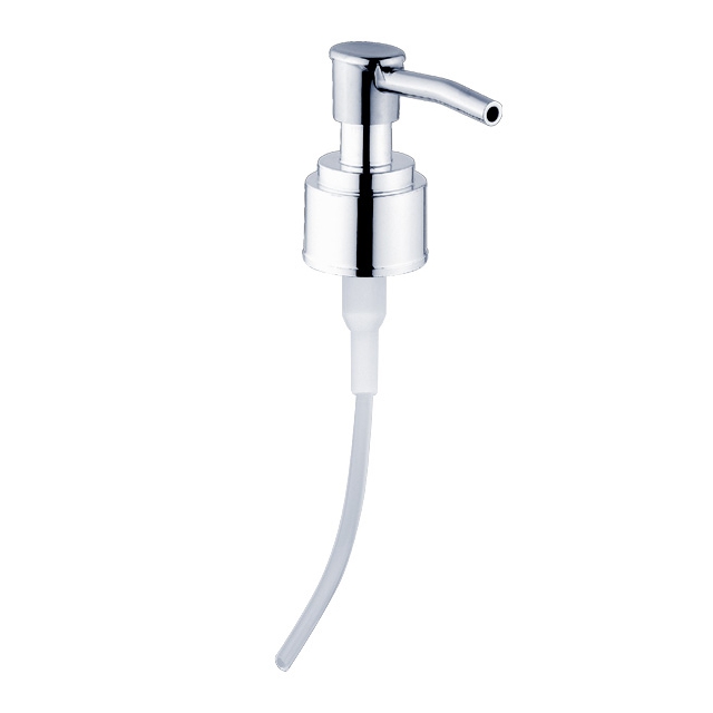 Dispenser pump, made of plastic, chrome surface finish.