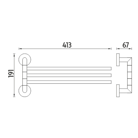Swivel arm towel holder with three arms.