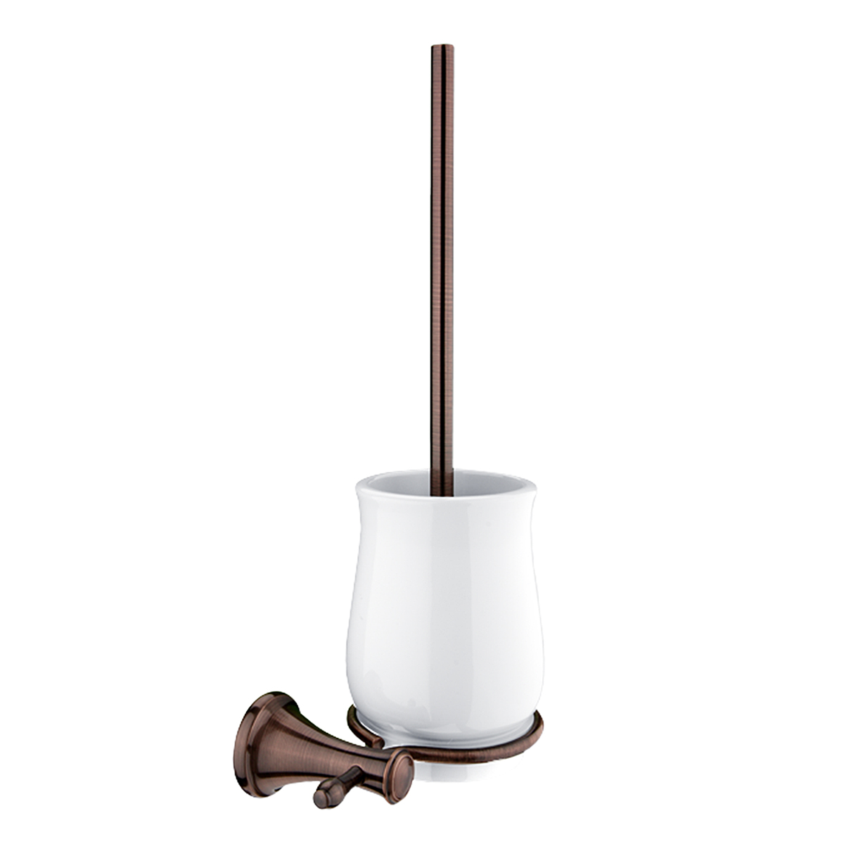 Toilet brush holder. Ceramic container. Brass holder with antique copper surface finish.