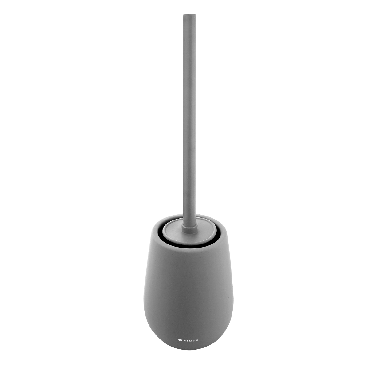 Toilet brush. Ceramic dark gray matte container. Stainless steel brush handle. Soft-touch Surface.