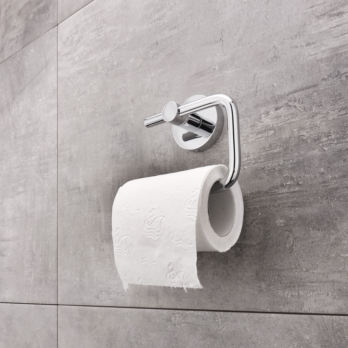 Toilet paper holder without cover.